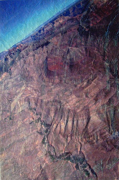 During a visit to Berkeley California I stepped into a Japanese paper making shop. The two women there hand made the most interesting papers from rice and other materials. The idea of working with organic materials once again struck my fancy. I purchased several sheets of the paper with no idea of what or how I could use them I only new that I wanted to print or paint something onto them.