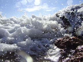 While vacationing in the Caribbean I started to shoot the waves with my underwater camera. The water is so clear that getting details is a real possibility. I also shot videos of the waves as they crashed onto the shore. Those videos can be seen in the video section of my Web site. I merged some of these images together in a Photoshop project that can be seen on this page.